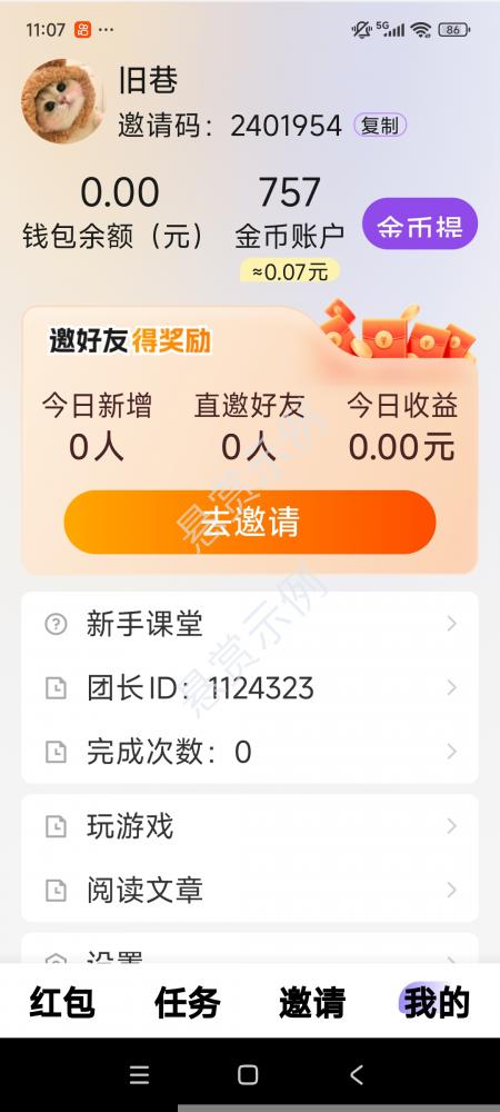 限新用户,注册时间在接单之后,师傅ID2401954,首页开红包领金币,提现到账1元即可,本人亲自测过每天首页开红包10分钟能提现3-5元,红包小了就不领,隔天会变大(提现时间9:00至23:00)