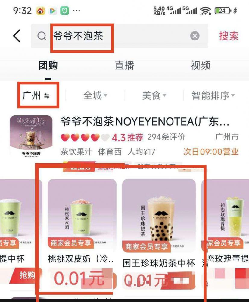 抖音团购搜索《爷爷不泡茶》支付0.01购买任意饮品,不限制地区
