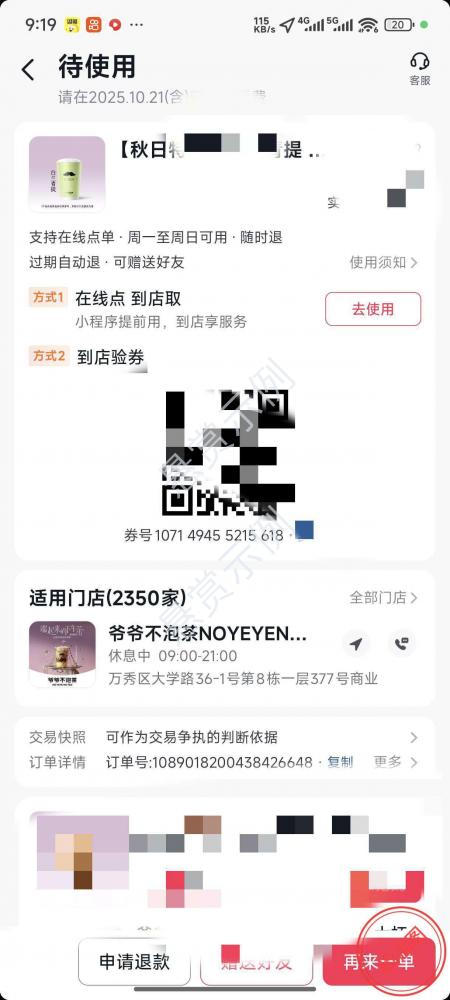 完整券码截图,不要打码