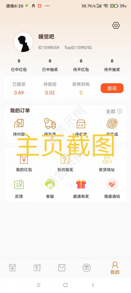 我的主页截图,核对邀请人ID1599559