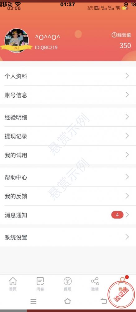 (注意:关于您自己的问卷奖励不属于调查项目经验问卷)