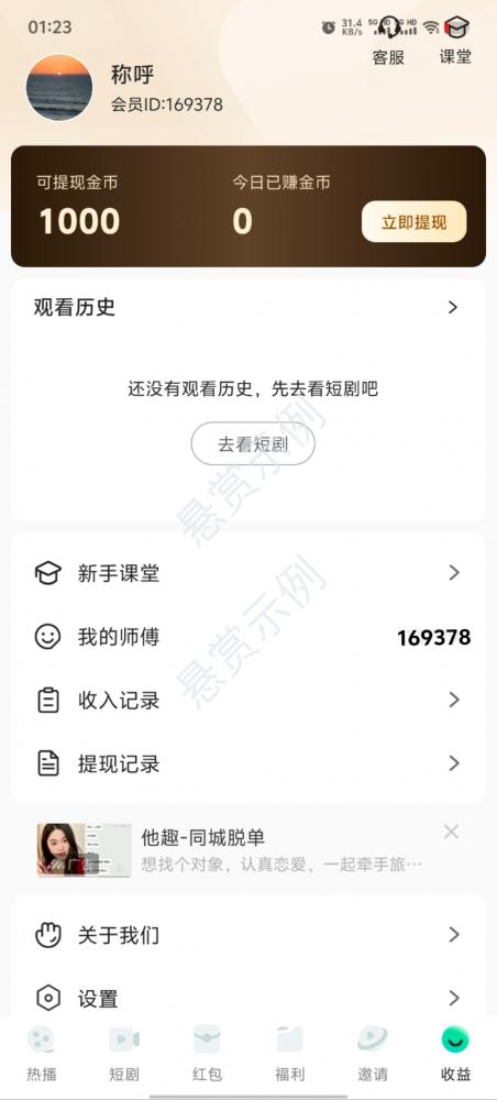 要求新用户,看视频短剧,差不多一个30秒视频可以赚0.5元左右,提现秒到账,可以长期玩