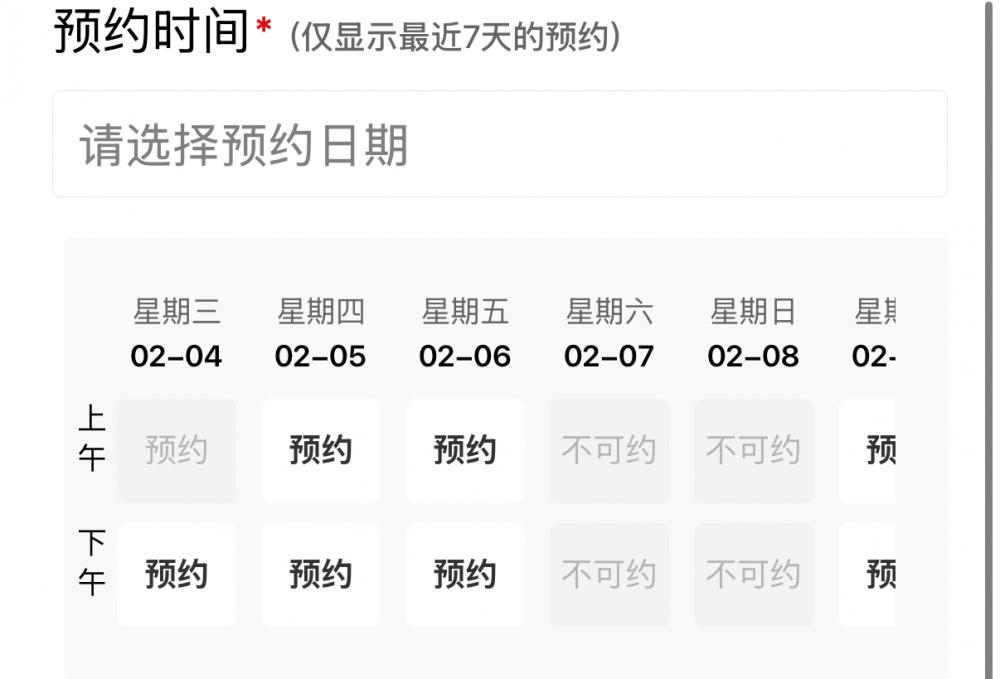 预约时间没有要求,越往后越好