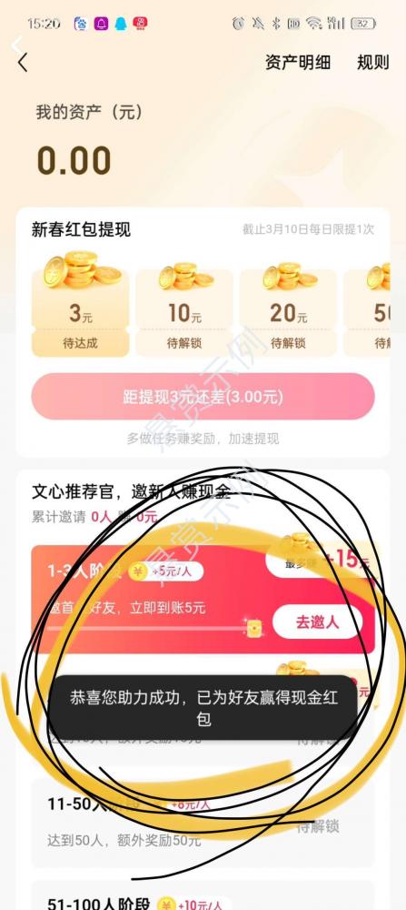 登录后助力成功截图(如果没有进行助力,需要再复制下上面的链接打开app,助力下就行)