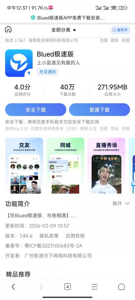 搜索豌豆荚内下载blued极速版或者任意平台下载blued极速版