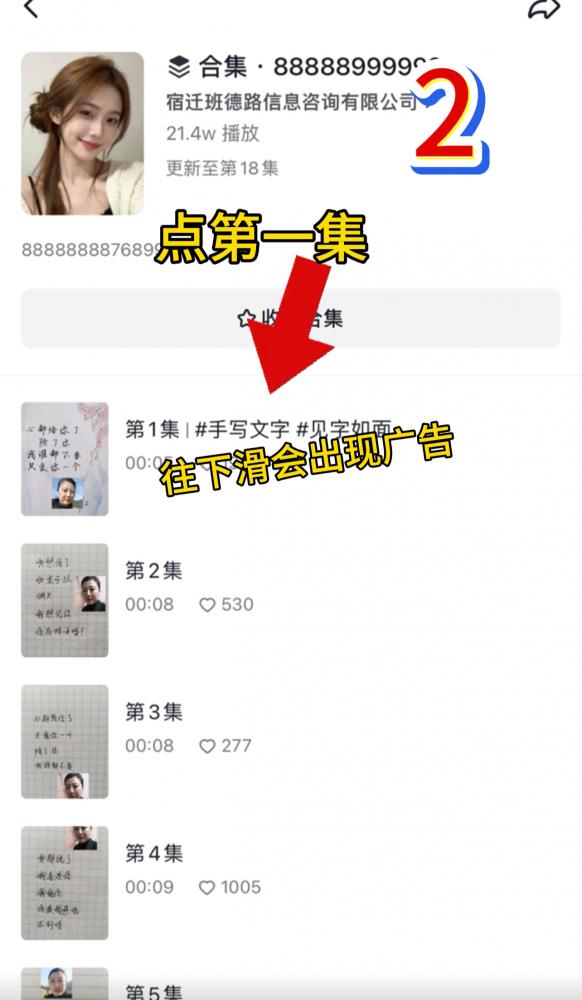 进主页点(88889999)从第一集开始刷到10集左右 就会出现广告字样(没出现广告的请放弃,必须把广告看完,底部出现上滑2字(大概看10个广告)
