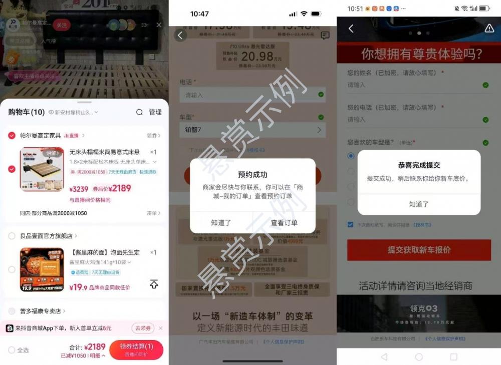 就点下方详情进去,看啥内容就操作就行了,(购物直播间的你就放个商品在购物车截图,预约的就预约下,聊天的就发2句话过去)其中任意一个广告进入,广告类型不限咨询几句/填表提交成功/下载登录/三选一广告类型进入完成【手机顶部下滑露出顶部时间--再截图,其中一张提交即可